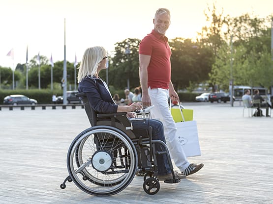 Ein nützlicher Helfer ist hier der elektrische Zusatzantrieb e-fix, der aus Ihrem Rollstuhl einen kleinen und leichten Elektrorollstuhl macht. Dies ermöglicht es Ihnen selbstständig auch längere Strecken und Steigungen ohne Anstrengung und fremde Hilfe zu überwinden.